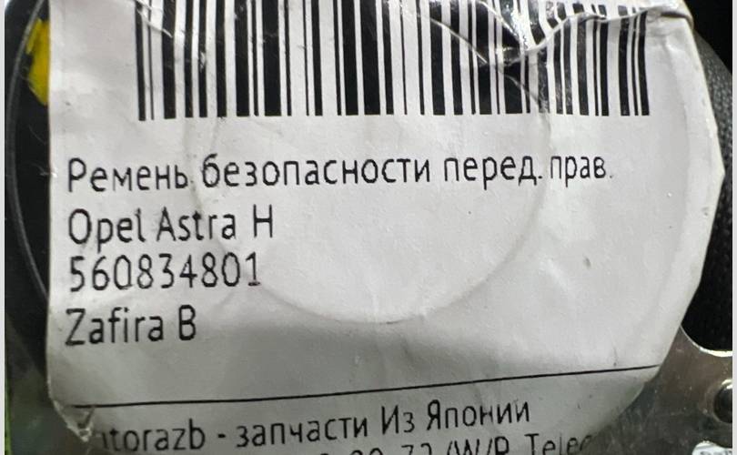 Ремень безопасности Opel Astra 560834801 L35 Z18XER, передний правый