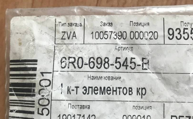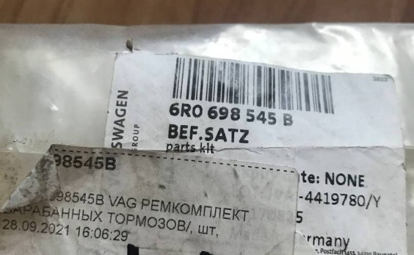 Ремкомплект тормозов Volkswagen Lupo 6R0698545B, задний