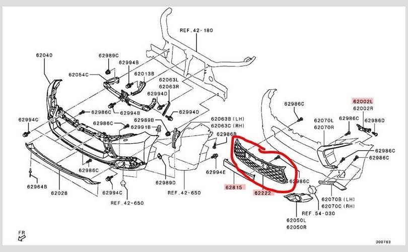 Решетка бампера Mitsubishi Pajero sport 2019 6402A373 KS1W 4N15, передняя