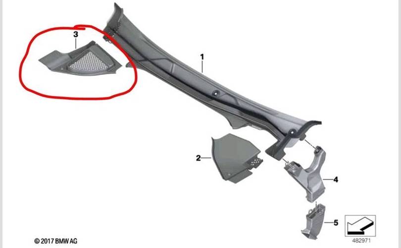 Решетка под лобовое стекло ( жабо ) BMW X3 2020 51717399018 G01 B57D30A 58406217, правая