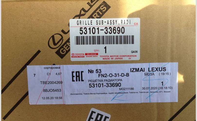 Решётка радиатора Lexus ES 2018-2020 5310133690 7, передняя