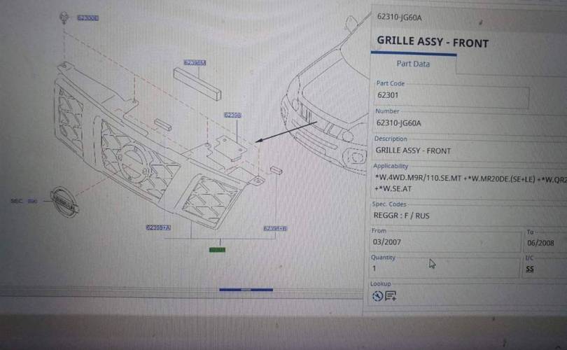 Оригинал Решетка радиатора NISSAN X-TRAIL (T31) (2007>)