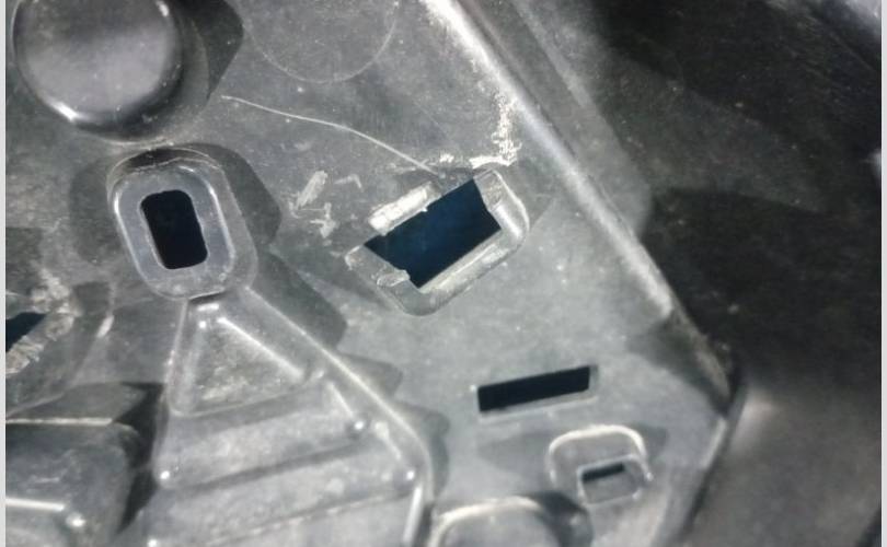 Есть потёртости,отломано крепление,есть трещина,нет куска пластика