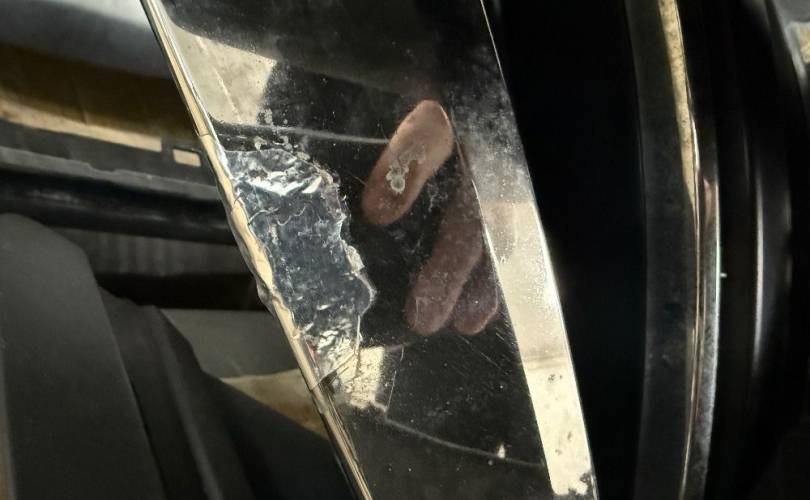 есть дефекты- мелкие царапины, трещина и дефект хром накладки