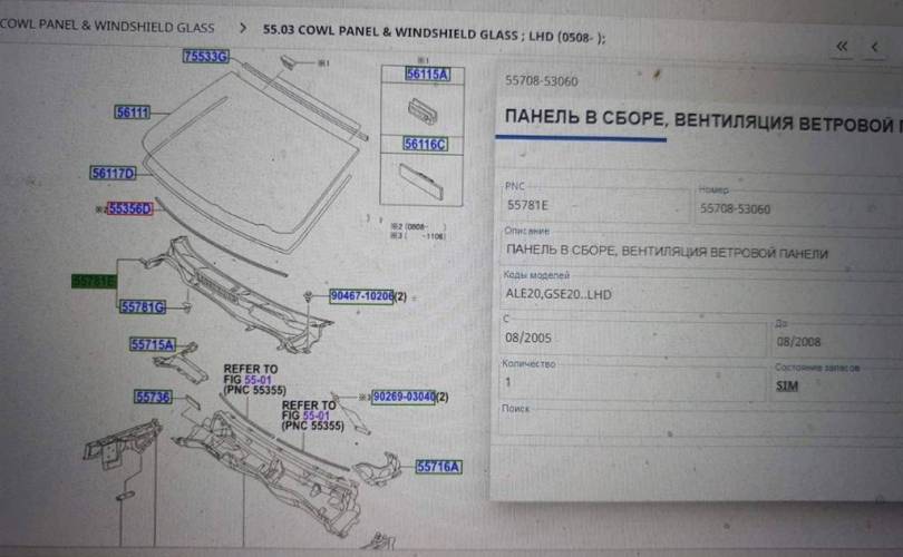 Жабо (решетка стеклоочистителя) без дефектов Lexus IS 06-14г
