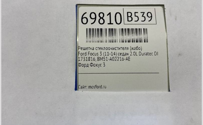 Решетка стеклоочистителя (жабо) Ford Focus 3 (11-14) СЕДАН 2.0L DURATEC DI TIVCT (154PS) 2012 (контракт)
