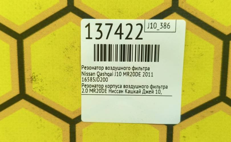 Резонатор воздушного фильтра Nissan Qashqai 2007 16585JD200 J10 MR20DE