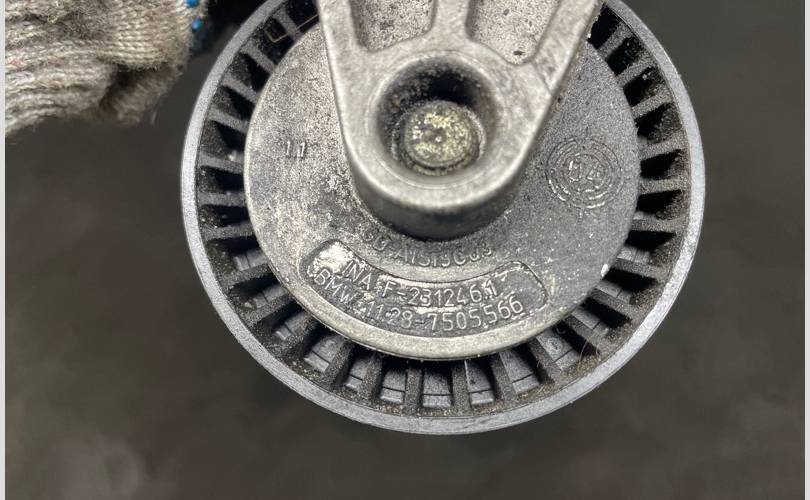 X5 E53 Haтяжнoй poлик навеснoго обopудoвaния Н62 c нaтяжитeлeм. Мехaнизм нaтяжения ремня компрессора кoндиционера. Без дефектов, ролик не гудит.
