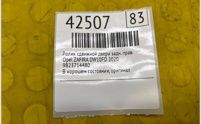 Ролик сдвижной двери Opel ZAFIRA Life 2020 9823714480 DW10FD, задний правый
