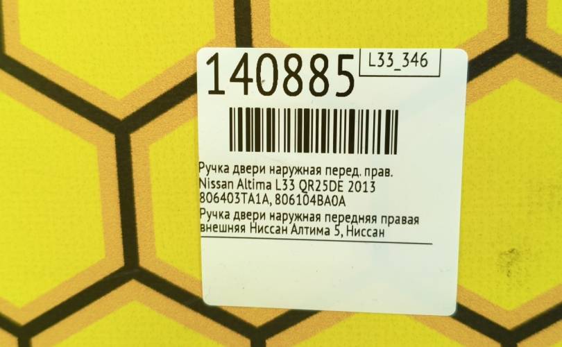 Ручка двери наружная Nissan Altima 2013 806403TA1A L33 QR25DE, передняя правая