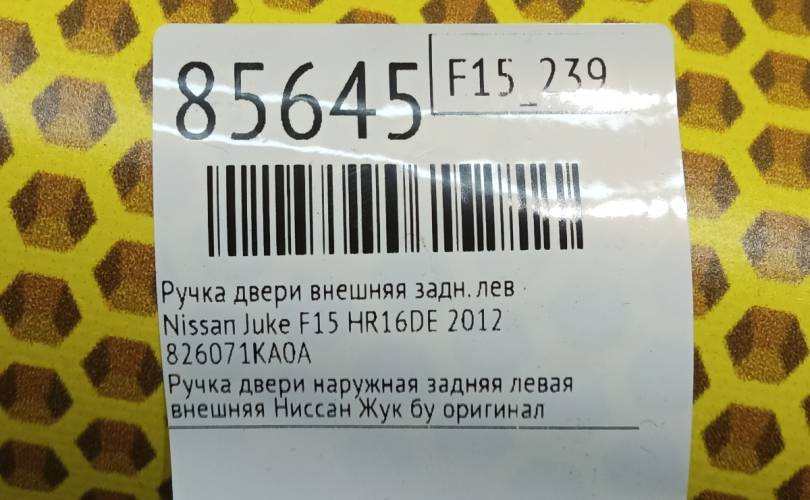 Ручка двери наружная Nissan Juke 2012 826071KA0A F15 MR16DDT, задняя левая