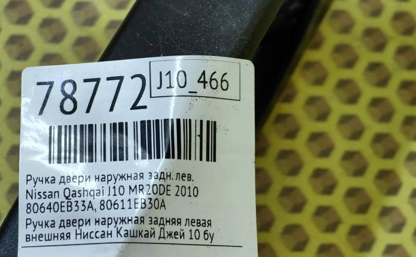 Ручка двери наружная Nissan Qashqai 2010 80640EB33A J10 MR20DE, задняя левая