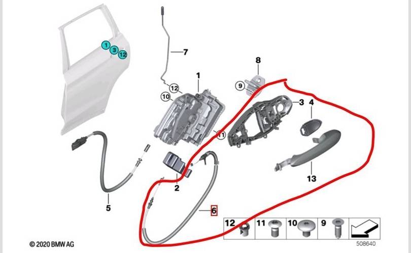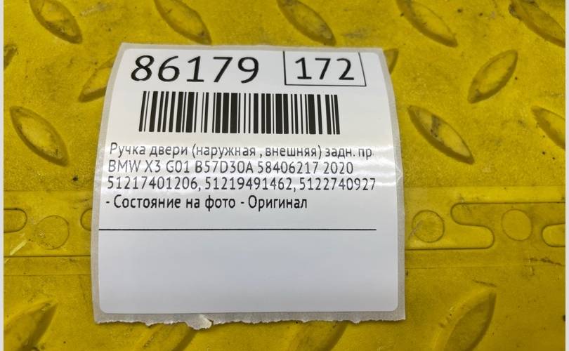 Ручка двери (наружная , внешняя) BMW X3 2020 51217401206 G01 B57D30A 58406217, задняя правая