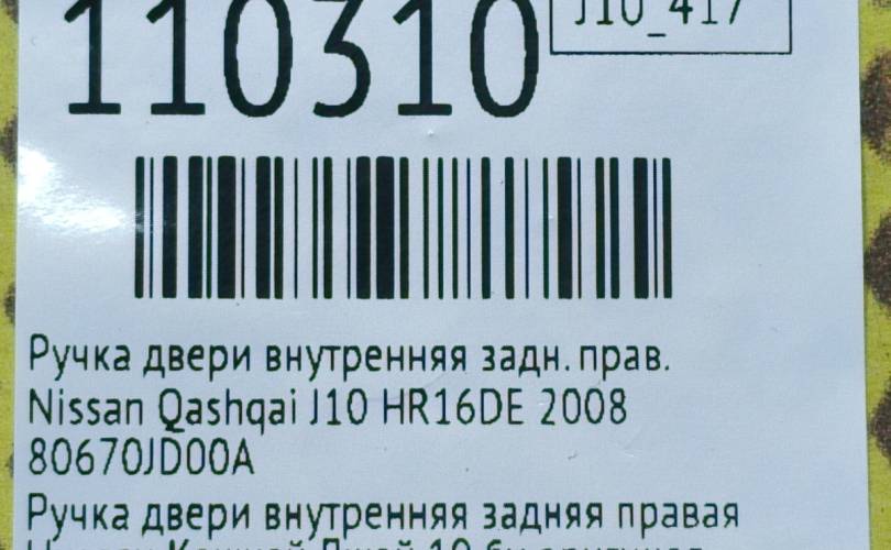 Ручка двери внутренняя Nissan Qashqai 2008 80670JD00A J10 HR16DE, задняя правая