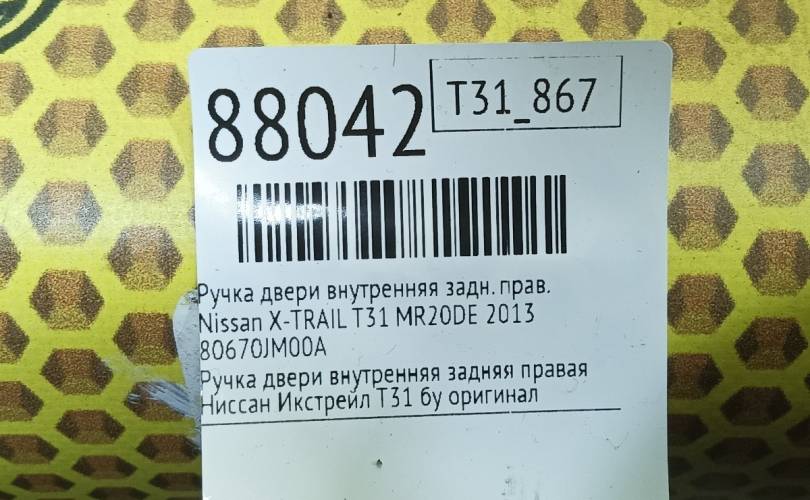 Ручка двери внутренняя Nissan X-TRAIL 2013 80670JM00A T31 MR20DE, задняя правая