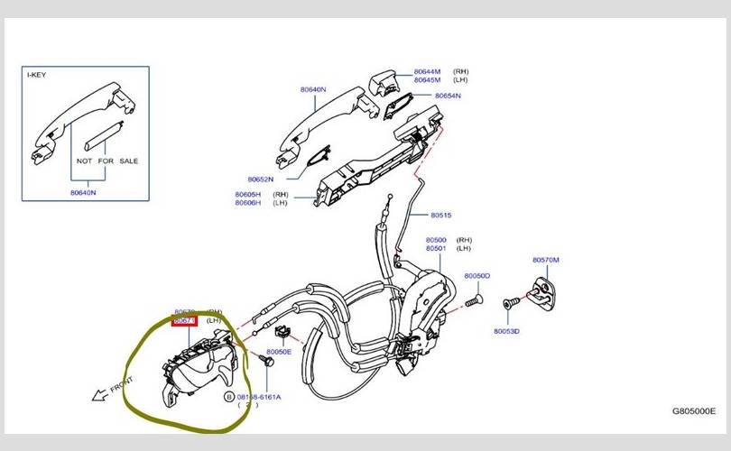 Ручка двери внутренняя Nissan X-trail 2019 806714MA0A T32 QR25, передняя левая
