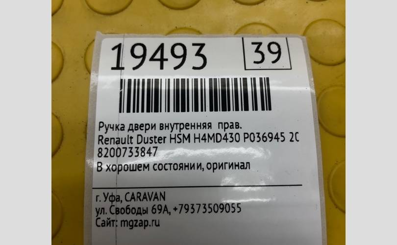 Ручка двери внутренняя Renault Duster 2018 8200733847 HSM H4MD430 P036945, правая