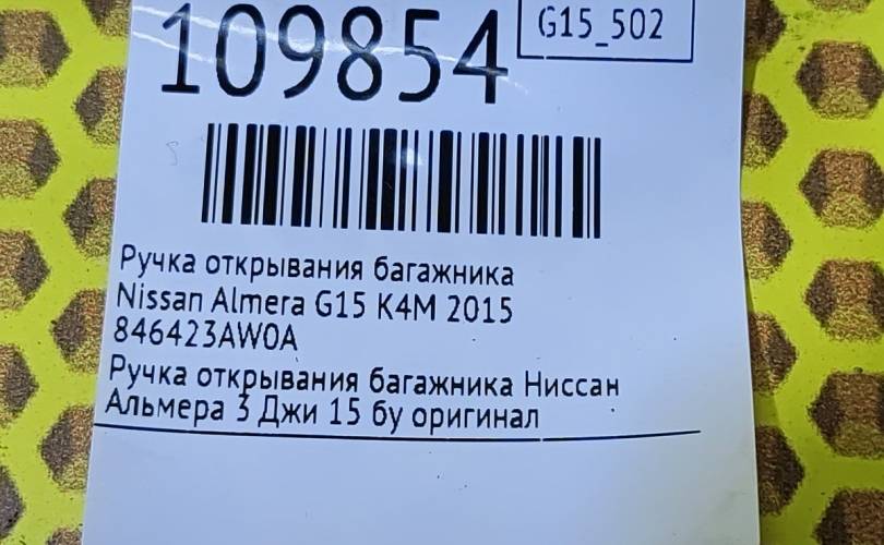 Ручка открывания багажника Nissan Almera 2015 846423AW0A G15 K4M