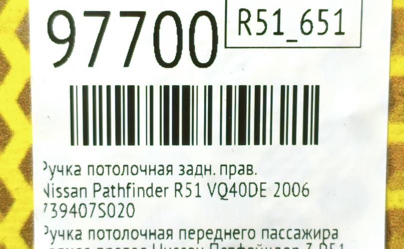 Ручка потолочная Nissan Pathfinder 2006 739407S020 R51 VQ40DE, задняя правая