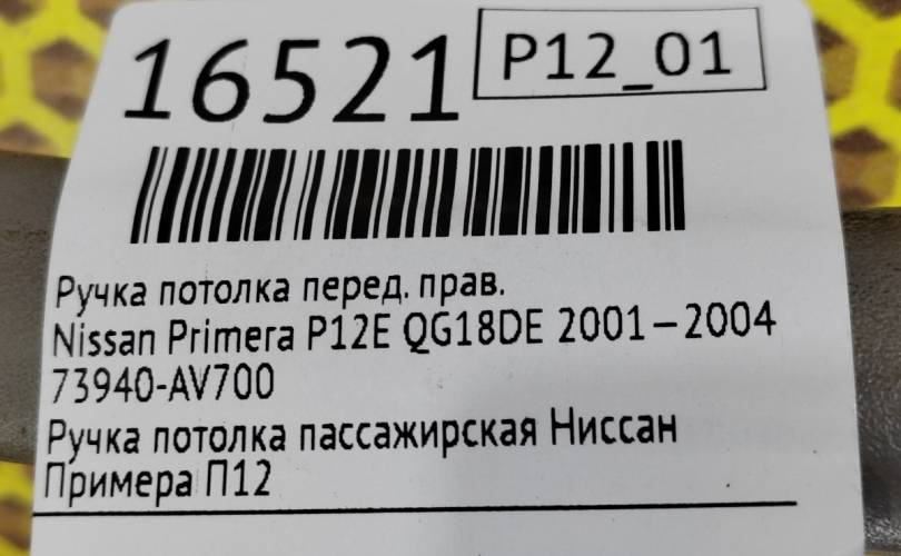 Ручка потолочная Nissan Primera 2001—2004 73940AV700 P12 QG18DE, передняя правая