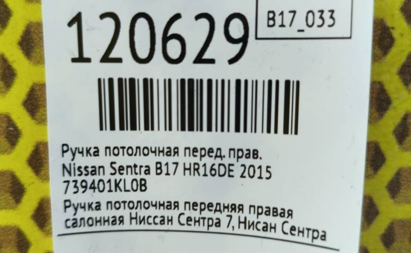 Ручка потолочная Nissan Sentra 2015 739401KL0B B17 HR16DE, передняя правая