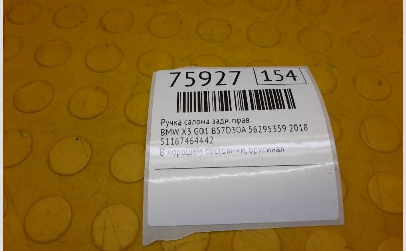 Ручка салона BMW X3 2018 51167464442 G01 B57D30A 56295359, задняя правая
