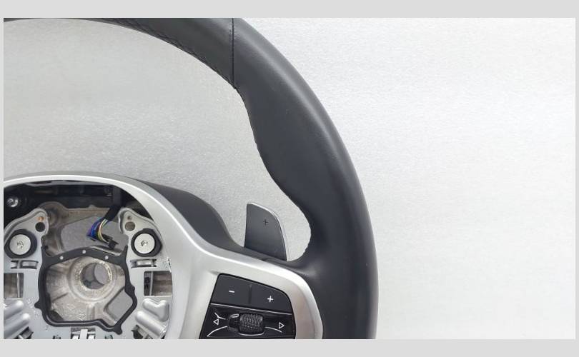 Спортивное рулевое колесо M, с многофункциональными кнопками, лепестками. Кожа, без обогрева. Состояние отличное, оригинал. Есть потертости, незначительный дефект обивки.