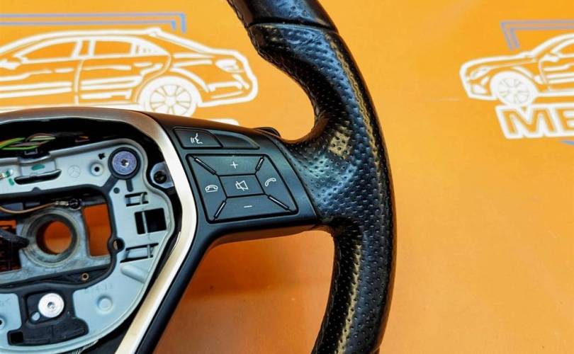 Номер по складу:294146 Рестайлинг. Черный ( 9Е38 ), кожа, трехспицевый, с лепестками, 12 кнопок. Авангард. ( имеются незначительные дефекты ). W117 W156 W176 W204 W207 W212 W218 W242 W246.