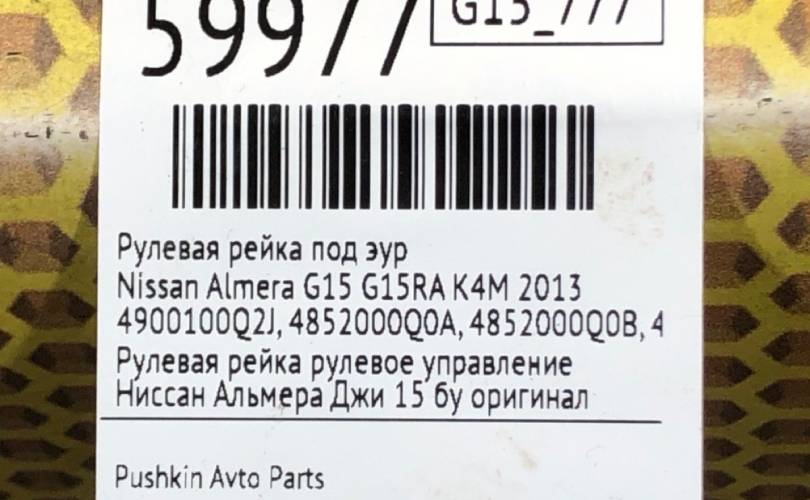 Рулевая рейка Nissan Almera G15 2013 4900100Q2J G15RA K4M