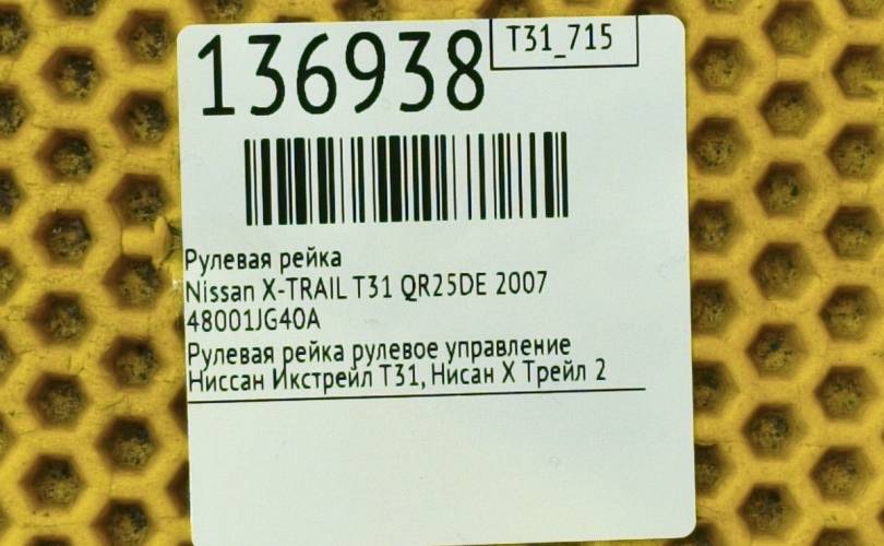Рулевая рейка Nissan X-TRAIL 2007 48001JG40A T31 QR25DE