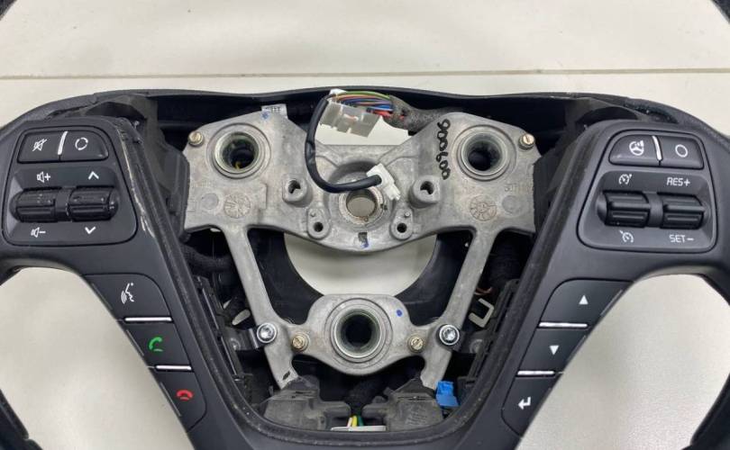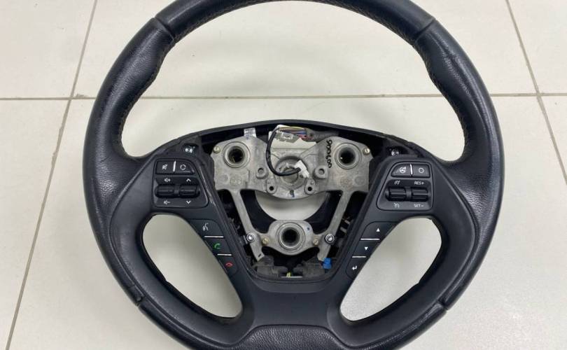 Оригинал. В сборе с кнопками и подрулевыми переключателями скоростей (лепестками). Потертости и царапины на коже рулевого колеса. Деталь демонтирована с автомобиля Kia Ceed (JD) 2012-2018. Год выпуска: 2014. Цвет: Белый. Код цвета: WD - CASSA WHITE. Привод: Передний. Трансмиссия: Автомат. Тип кузова: Хечбек. Модель двигателя: G4FG. Руль: Левый