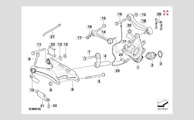 Задний левый поперечный рычаг.