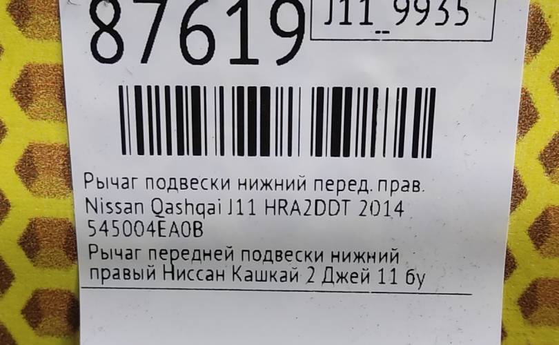 Рычаг нижний Nissan Qashqai 2014 545004EA0B J11 HRA2DDT, передний правый