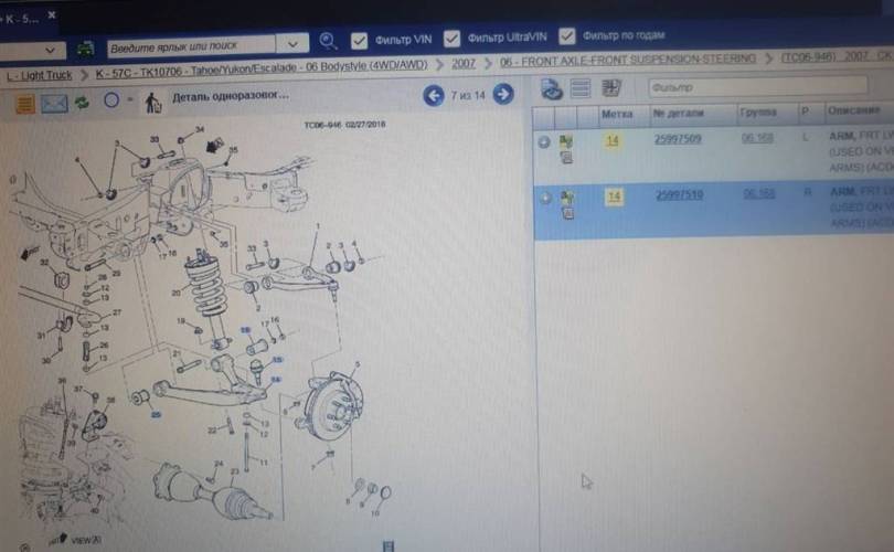 Рычаг передний нижний правый Cadillac Escalade 3