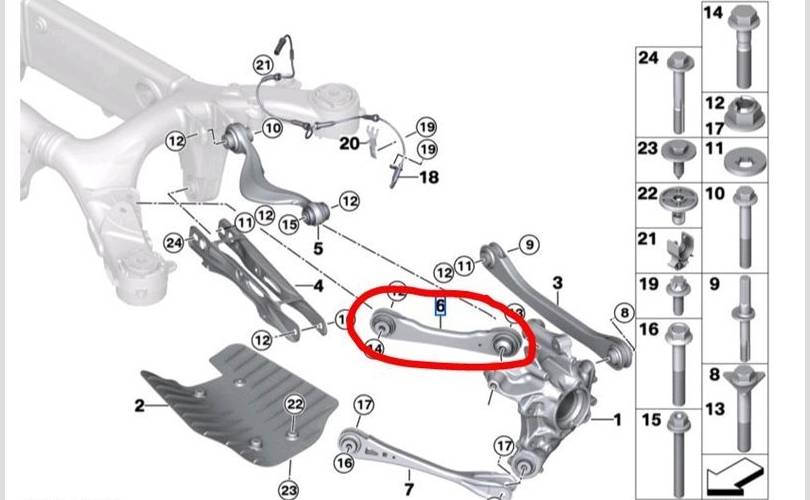 Рычаг подвески BMW X3 2020 33306871005 G01 B57D30A 58406217, задний левый