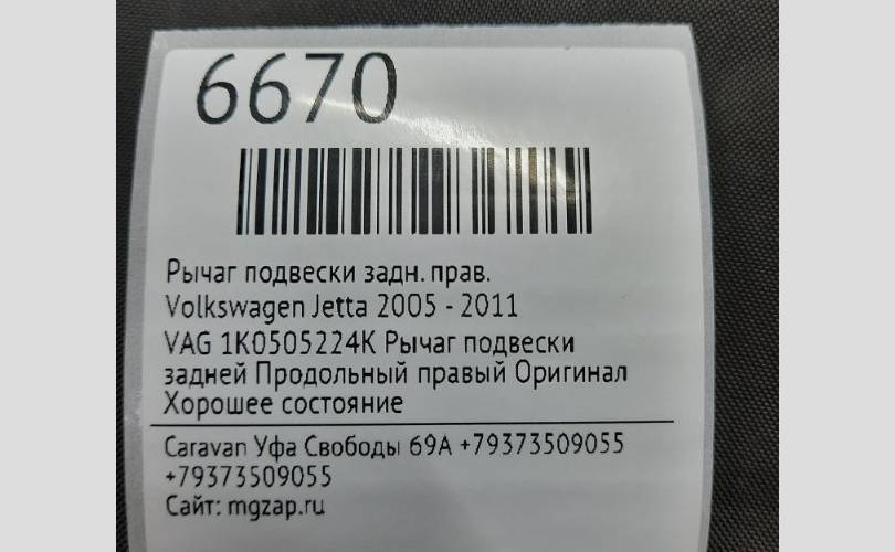 Рычаг подвески Volkswagen Jetta 2005 - 2011 1K0505224K, задний правый