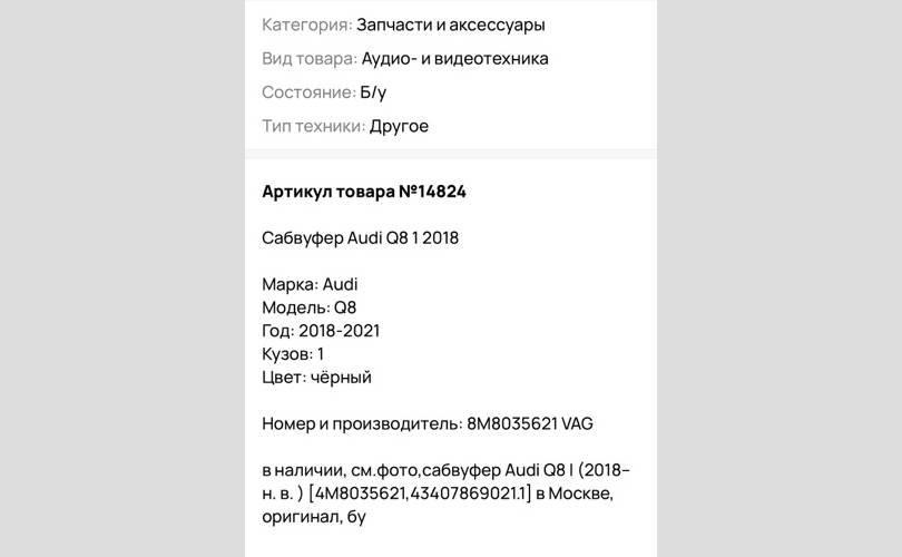 в наличии, см.фото, Сабвуфер Audi Q8 1 2018 задн. 108NYOK815C8, в Химках, оригинал, бу
