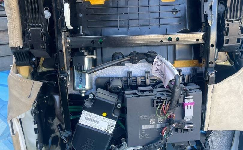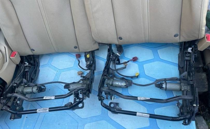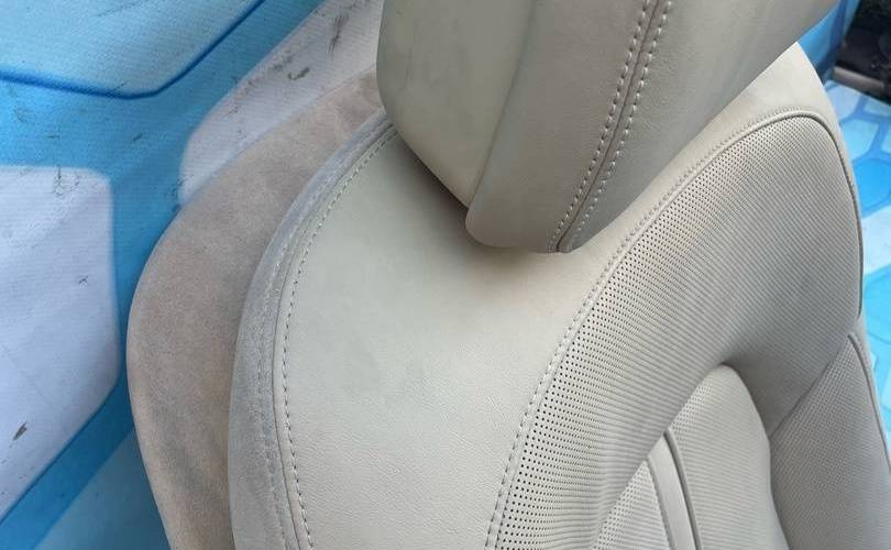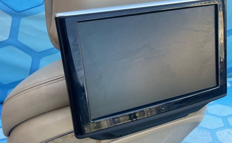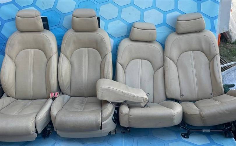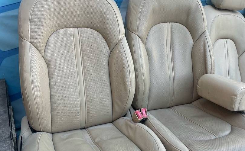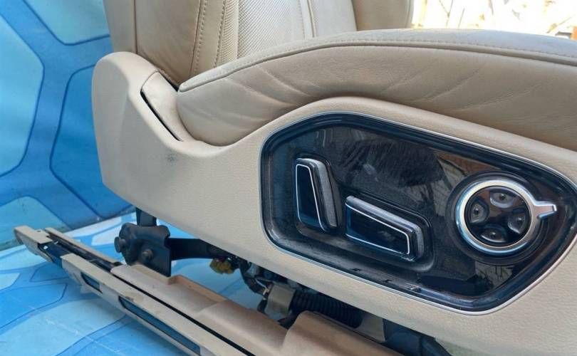 Салон бежевый c блоками регулировок, моторчики, мониторы дисплей кнопки управления Кожа с перфорацией, обогрев, вентиляция, электро-регулировки Состояние на 4 из 5, Нужно чистить, порезов и потертостей нет