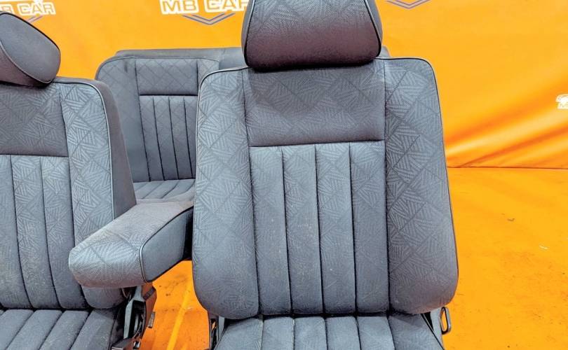 Номер по складу:328935 Рестайлинг. Передние и задние сиденья. Темно-серая ткань. Механическое регулирование. Без подогрева. С подлокотником. W124.