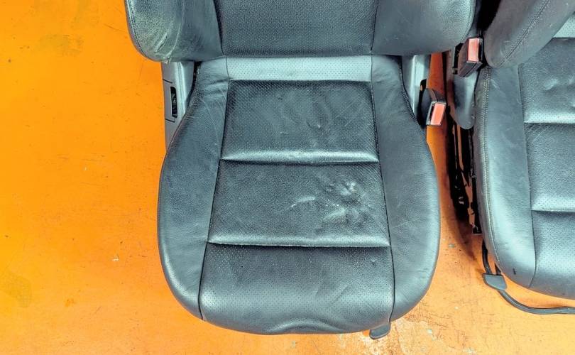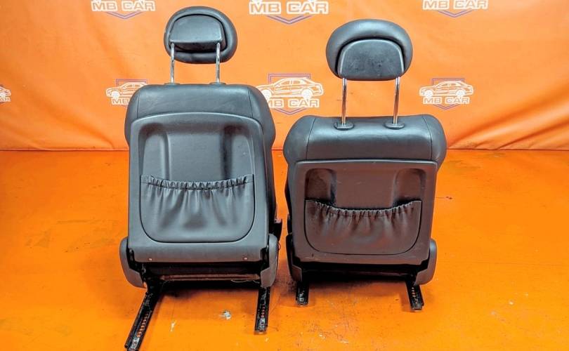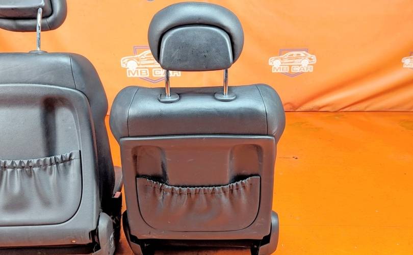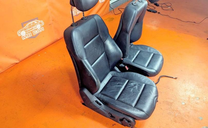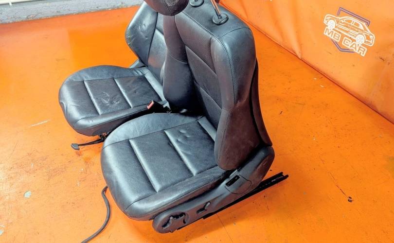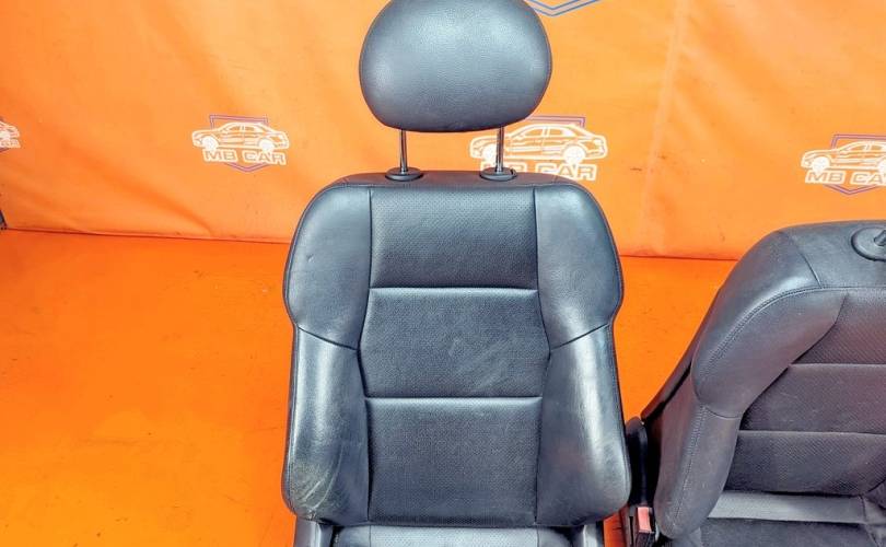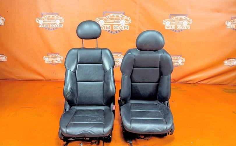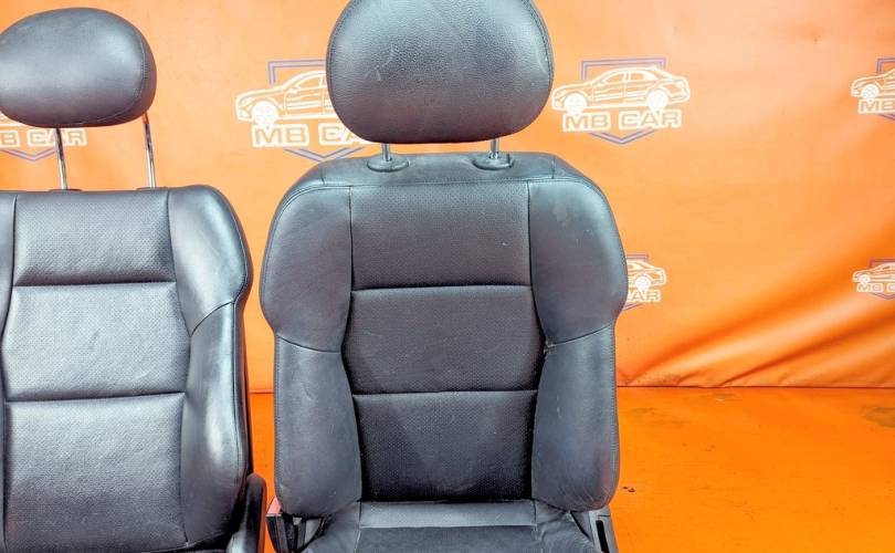 Номер по складу:338643 Комплект - 2 передних сидений. Черные. Кожа. Полуэлектрорегулировка. Вмятины. W203.