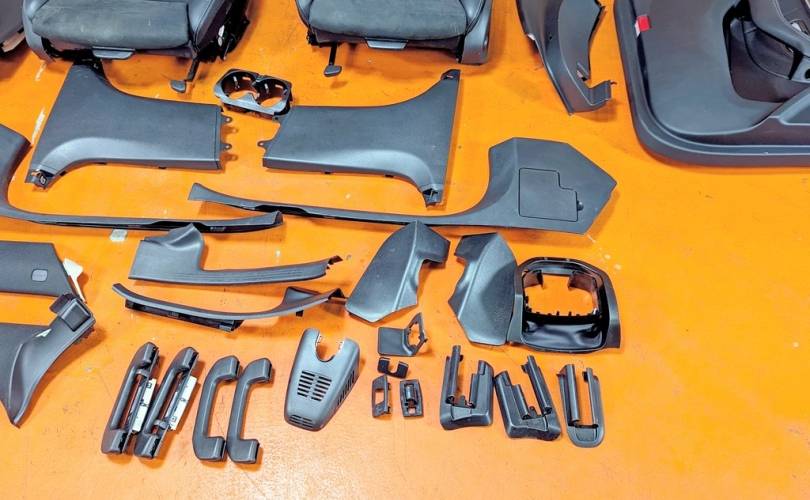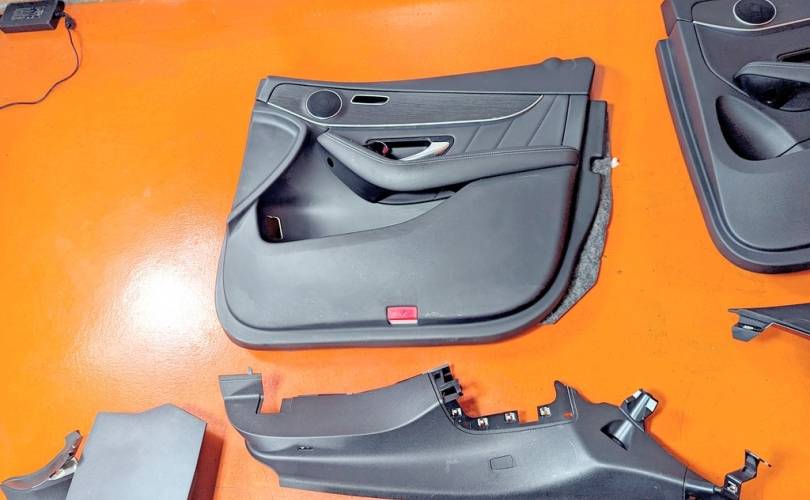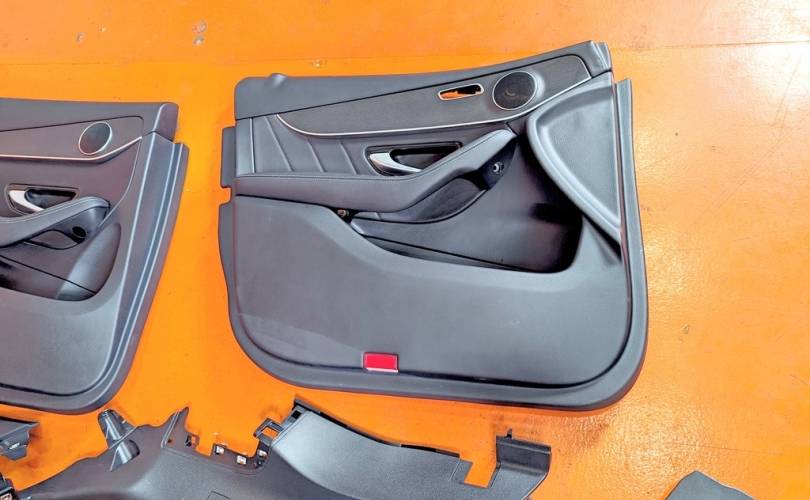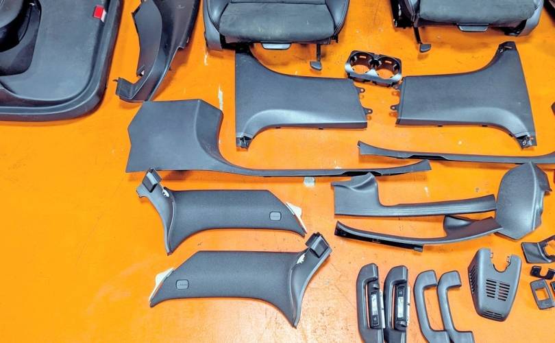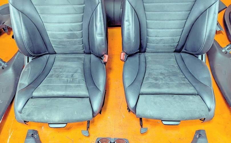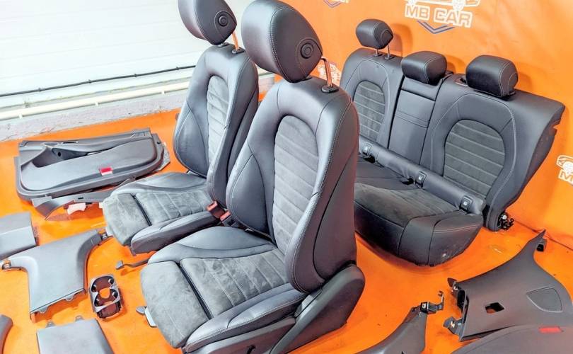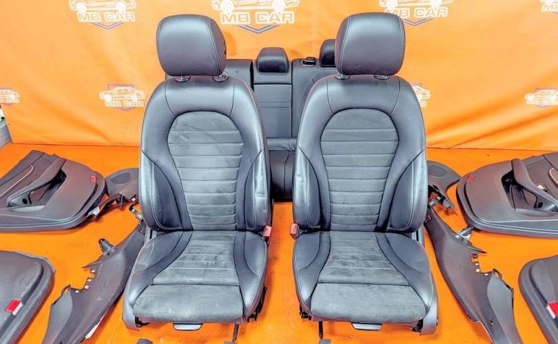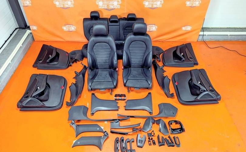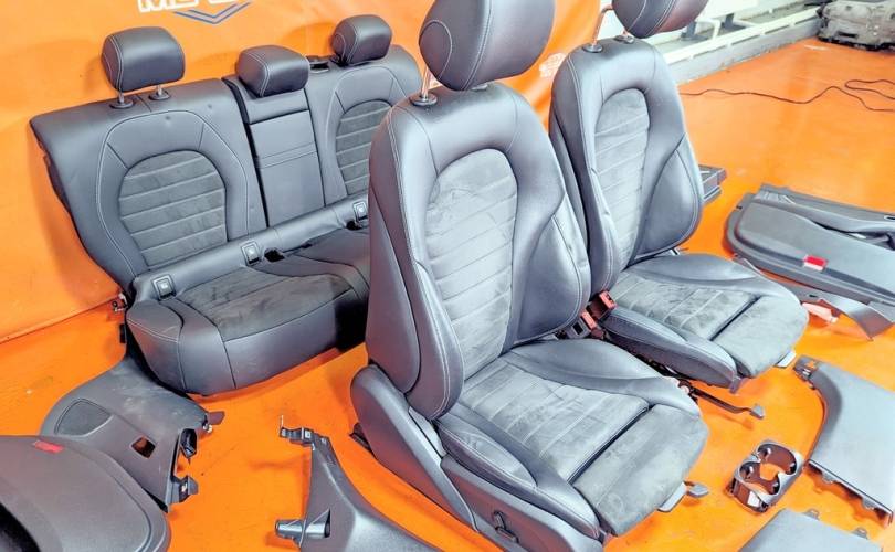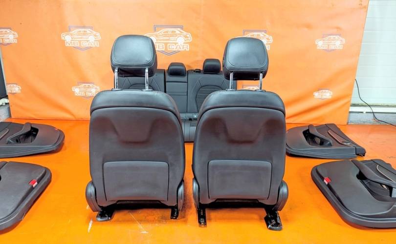 Номер по складу:334486 Черный. Комбинированая кожа. Комплект - передние и задние сиденья, накладки, ручки, дверные карты. подстаканник и мелкий пластик. Передние сиденья полуэлектро, с подогревом. W253.