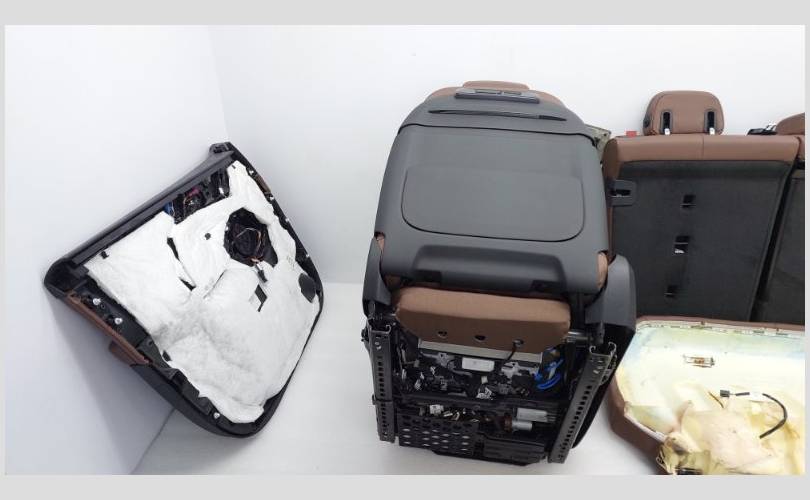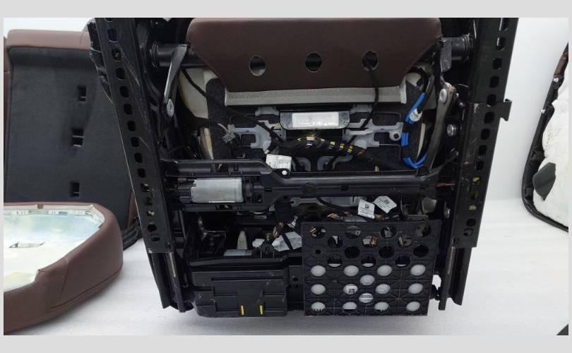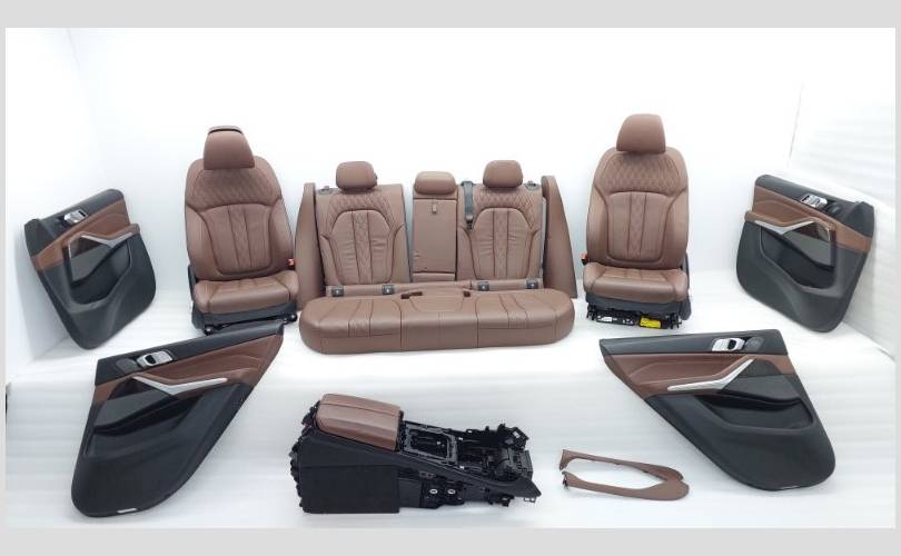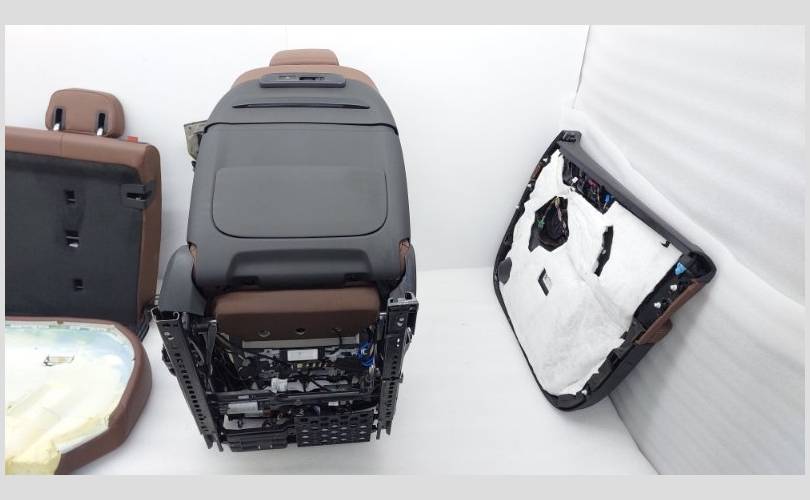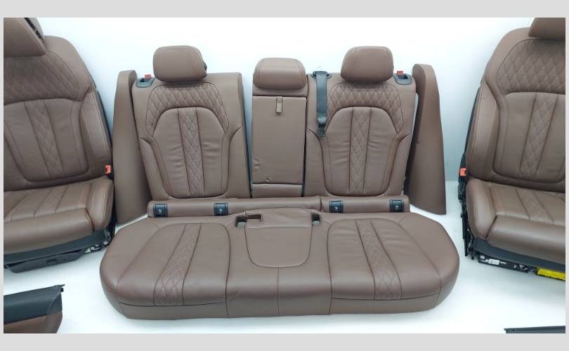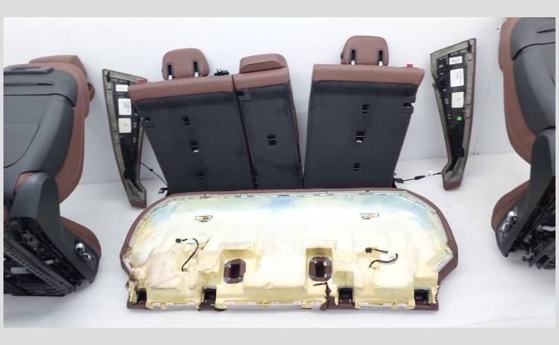 В комплекте с обшивками дверей, центральной консолью и ковровым покрытием. Состояние отличное, оригинал. Обивка кожа цвет Merino (VAHF) кофейный. Присутствуют замятия на подлокотнике второго ряда сидений. С отстрелянными подголовниками. Все сиденья оборудованы обогревом. Передний ряд оснащен подушками безопасности, вентиляцией, электрорегулировкой по высоте, регулировкой наклона подушки, механизмом подколенной опоры, регулировкой ширины спинки, регулировкой наклона верхней части спинки, регулировкой высоты подголовников. Имеются массажные функции для водителя и пассажира. С системой ISOFIX.