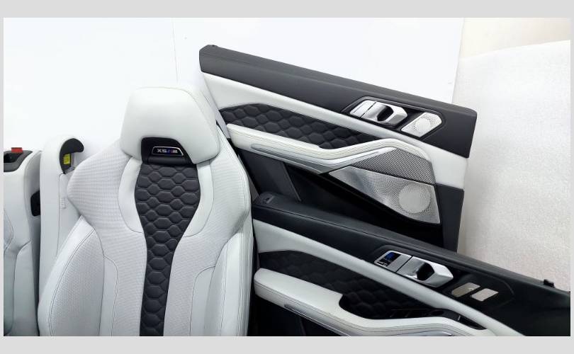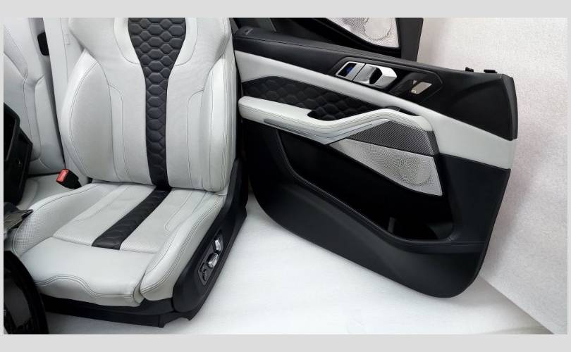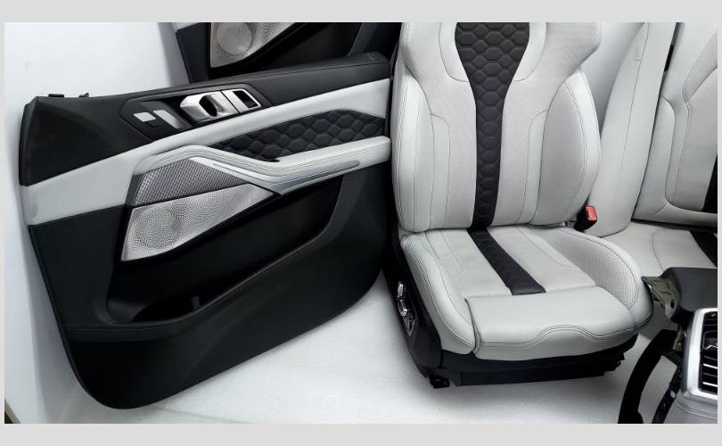 Состояние отличное, оригинал. Имеются незначительные потертости. X5M Competition, в сборе с декоративными накладками Aluminium crossline. Материал X3A9 полная кож.отд.Merino/silverstone 2. Передний ряд сидений повышенной комфортности оборудован, электрорегулировкой, подушками безопасности, вентиляцией, подколенной опорой, с функциями массажа. Все сиденья с подогревом. Оснащены дисплеями и системой ISOFIX.