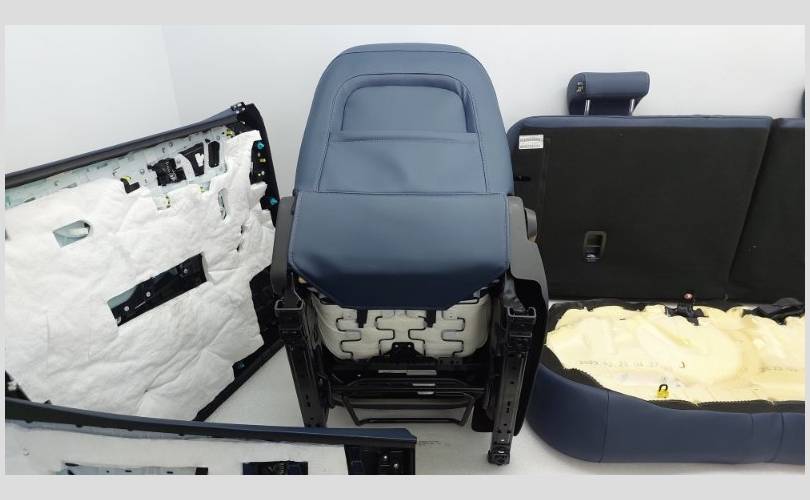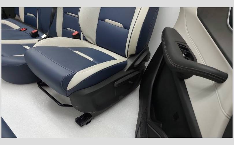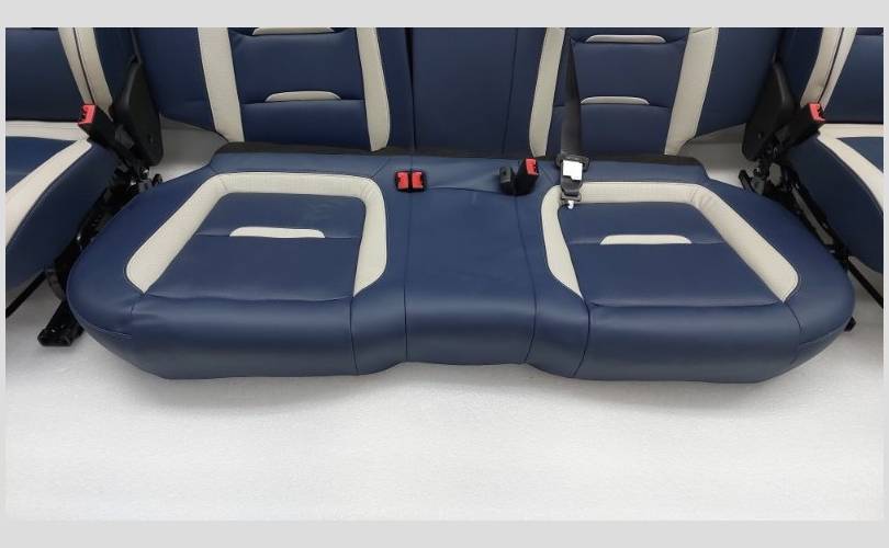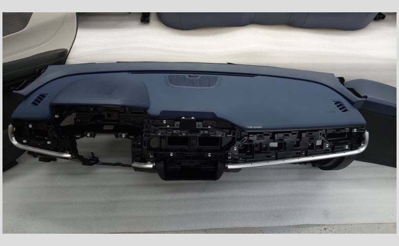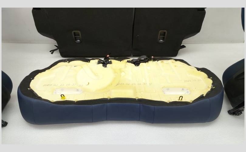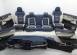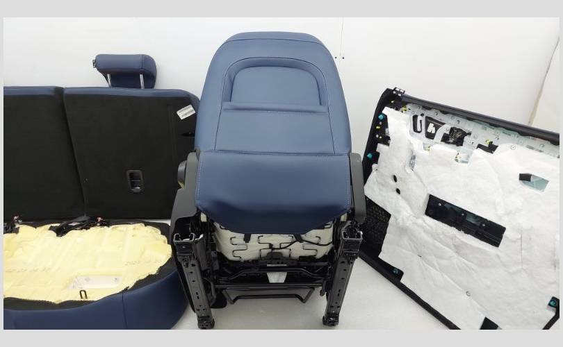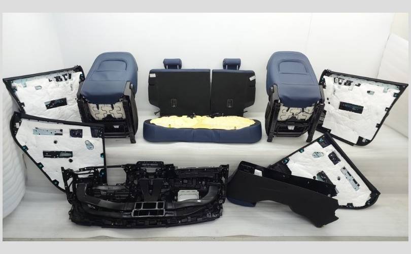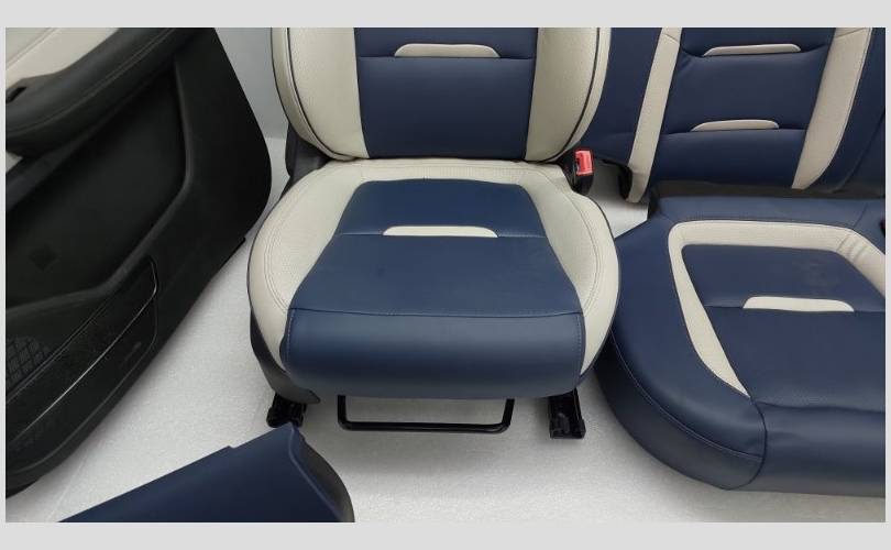 Комплект сидений с обшивками дверей, торпедо и центральной консолью. Состояние хорошее, оригинал. Материал кожа, цвет синий/белый. Есть дефект обивки на задней спинке второго ряда, имеются царапины на торпедо. Механическая регулировка, передний ряд с обогревом.