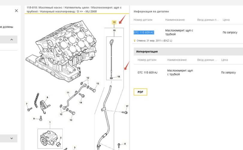 Bentley Continental Flying Spur (2006-2012), Continental Flying Spur (2013+), Continental GT (2003-2010), Continental GT (2011-2018), Continental GTC (2006-2010) трубка масляного щупа со щупом 07c115609ac 07C115609AJ 07c 115 609 ac 07C 115 609 AJ 07C115611T 07C 115 611 T