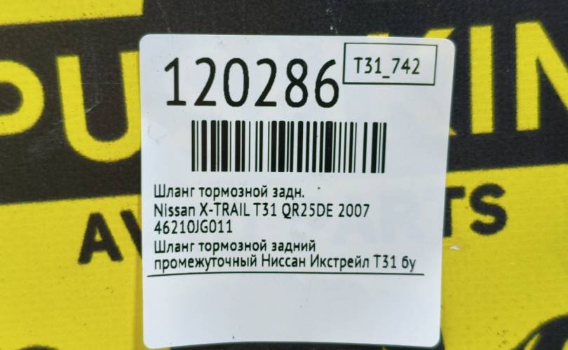 Шланг тормозной Nissan X-TRAIL 2007 46210JG011 T31 QR25DE, задний