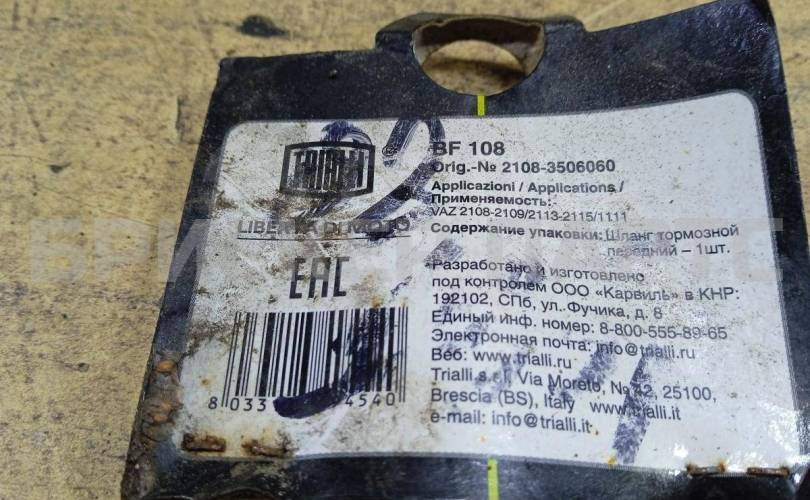 1) Наименование детали: Шланг тормозной ВАЗ Лада 2108