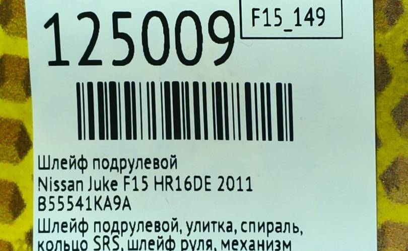 Шлейф подрулевой Nissan Juke 2011 B55541KA9A F15 HR16DE