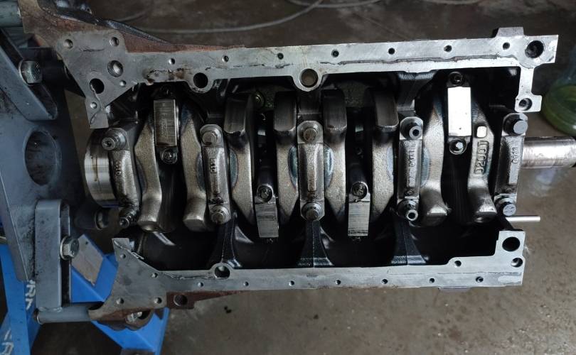 Блок цилиндров в сборе, коленвал, поршни