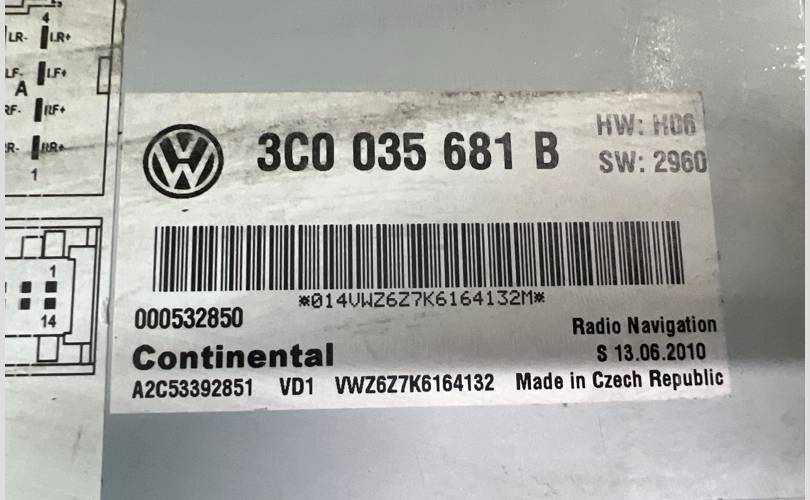Штатная магнитола Volkswagen Passat CC 2009 3C0035681B B6 BWS 3.6